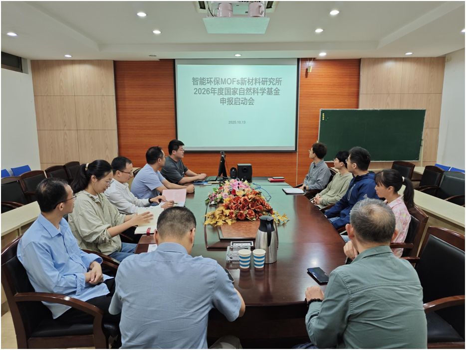 10月13日下午,智能环保MOFs新材料研究所在新型环保重点实验室会议室召开了“揭榜挂帅”联合创新项目推进暨2026年国家自然科学基金申报启动会议。会议由研究所所长解明华主持,团队成员参与。