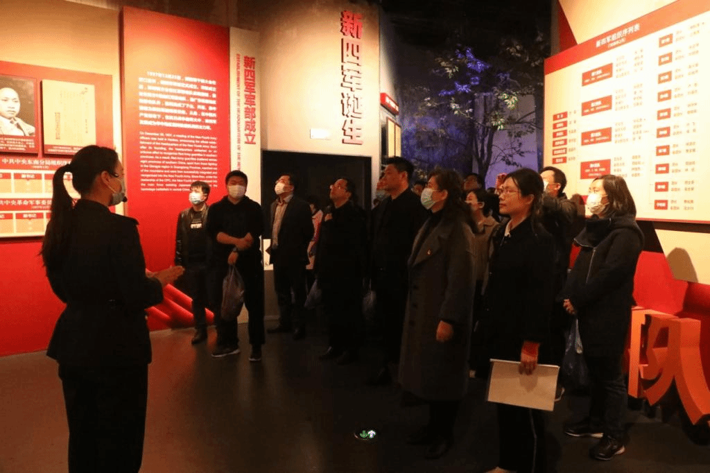 仪式结束后,在纪念馆讲解员的带领下,大家参观了新四军纪念馆的各个展厅。新四军领导人的群像、新四军战争的路线图、将士们使用过的枪械纪念物、战争缴获的战利品、一段段浴血奋战的片段,向人们诉说着新四军艰苦卓绝的火热岁月。