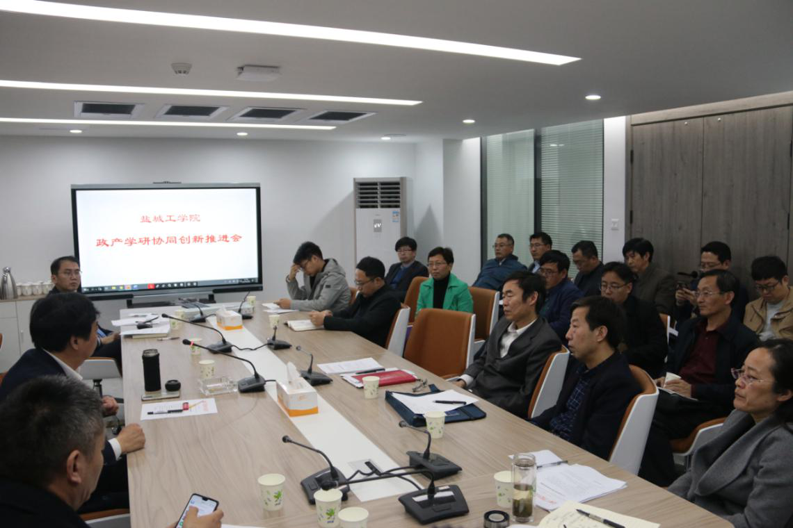 4月28日下午,学校在技术转移中心(西伏河产学研协同创新中心)会议室举办了产学研协同创新推进会。会议由科技产业处丁成处长主持,副校长王路明、盐南高新区高新技术中心王天波副主任、校级研究所负责人、入驻中心的所有机构负责人等40多人参加了推进会。